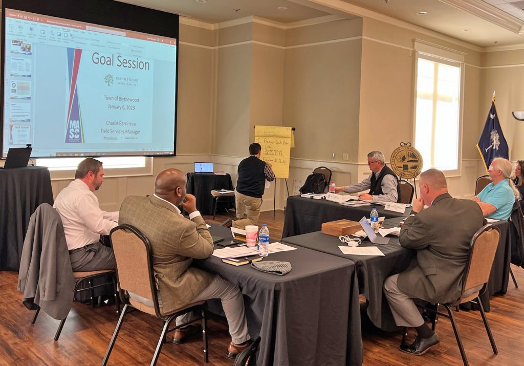 Charlie Barrineau, a field services manager with the South Carolina Municipal Association, coached the group on communication and cooperation in order to properly and effectively set goals.