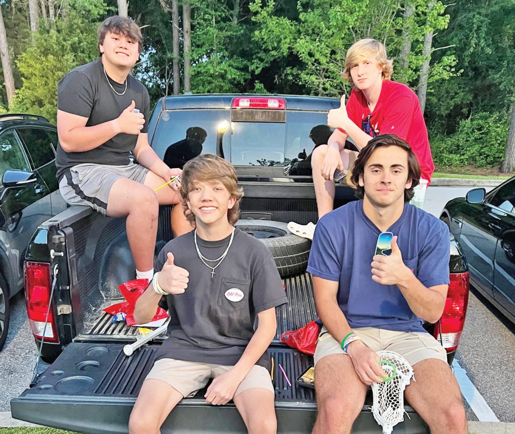 Four members of the Blythewood High School lacrosse team practiced on the green until the movie started, then watched it from the bed of their pickup truck. Families brought Bojangles, Kentucky Fried Chicken, Taco Bell and other fast food picnics. Kids brought their bikes, families brought their dogs.