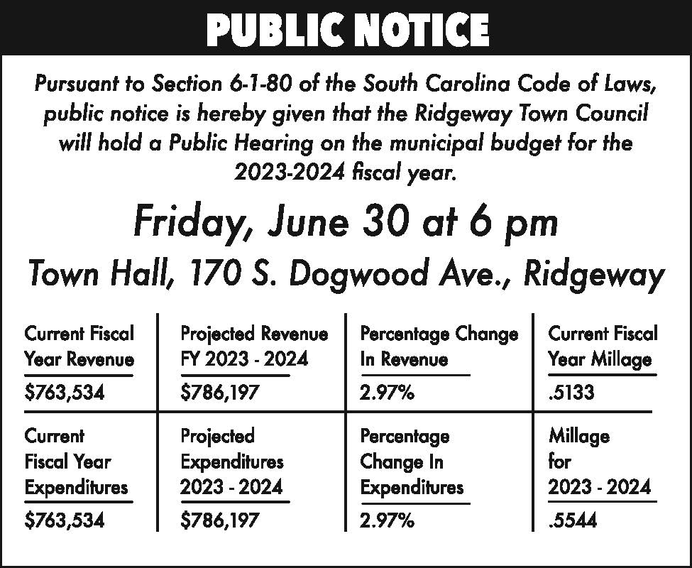 Public Notice: Ridgeway Municipal Budget