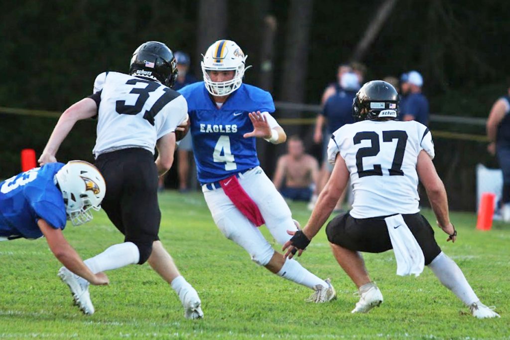 Richard Winn’s reserve-heavy offense stalled the team’s second drive with a fumble recovered by Laurens. Eagle freshman Johnathan Bonds intercepted a Crusader pass and took it 16 yards to set up the Eagle offense one last time.