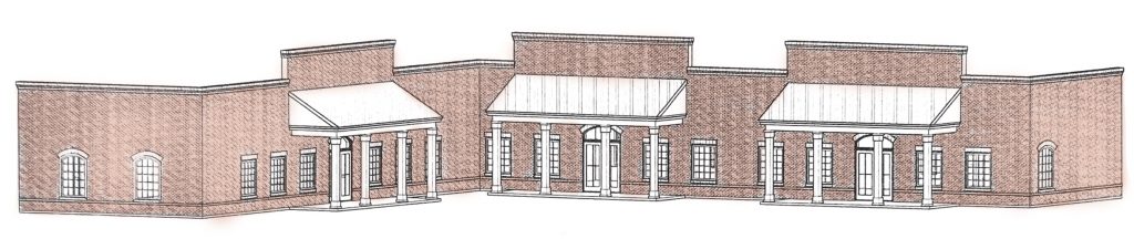 The larger, L-shaped building will house two tenants – Ole Timey Meat Market (a 2,700 square feet space) and the Blythewood Chamber of Commerce (a 2,500 square foot space). Ole Timey Meat Market will sit next to Main Street and face the back of the Church. The Chamber office space will face Main Street and back up to the railroad track.