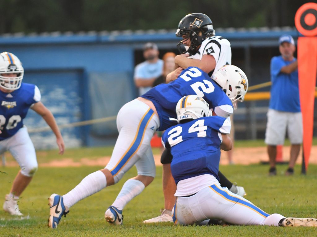 Junior quarterback Charlie Bonds connected with senior receiver Drew Spires on the first drive for an eight-yard touchdown. Junior kicker Josh Tyndall completed the PAT and the Eagles had the lead with 10:16 left in the first quarter. Richard Winn’s defense forced Wardlaw to punt on their first drive, but the Patriots responded with a defensive stop of their own on the Eagles’ next drive. The Eagle defense answered in kind by forcing the Patriots to punt, and Spires exploded with a 93-yard return for a score. Bonds converted the two-point conversion to give the Eagles a 15-0 lead.