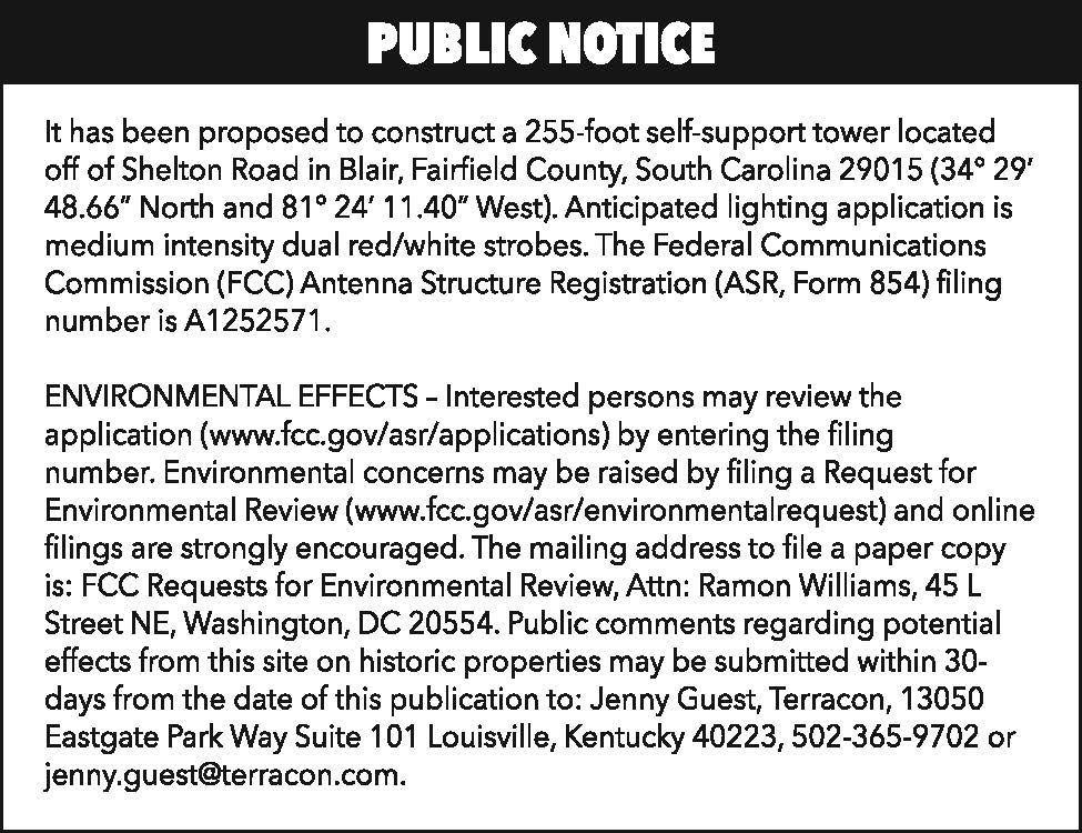 Public Notice: Tower in Blair