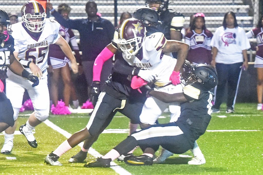 The Griffin defense had 45 tackles, 5 sacks, 5 forced fumbles and a pick-six in the 55-6 win over Columbia. | Joe Seibles