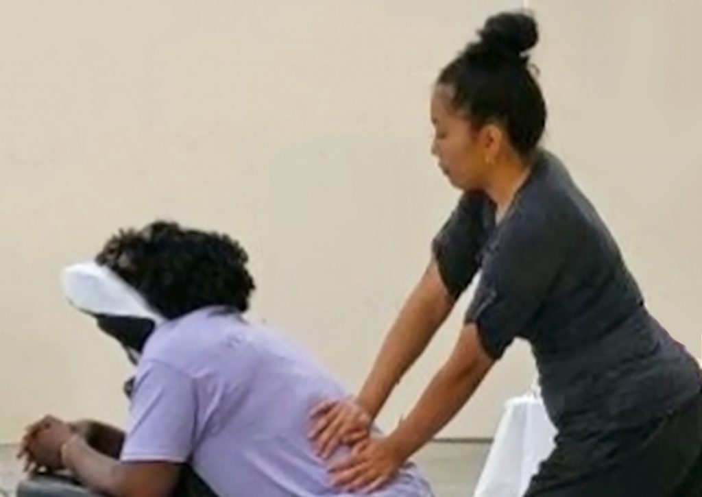 The award honors her engagement with the community: things like providing free chair massages at events, hosting wellness seminars, speaking to schoolchildren about her career, and assisting new massage therapists with business mentorship.