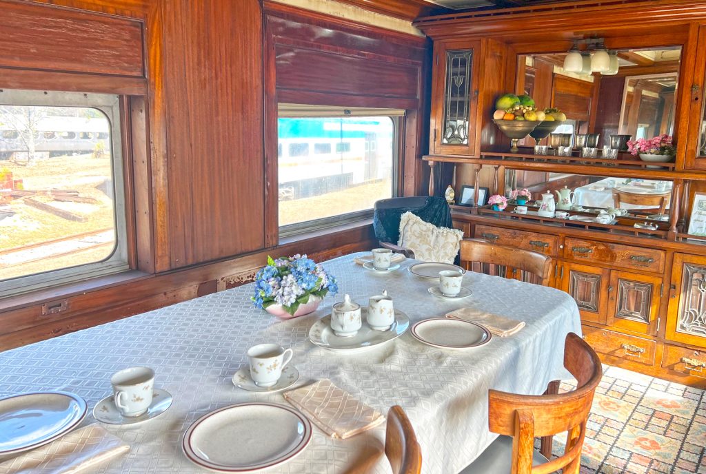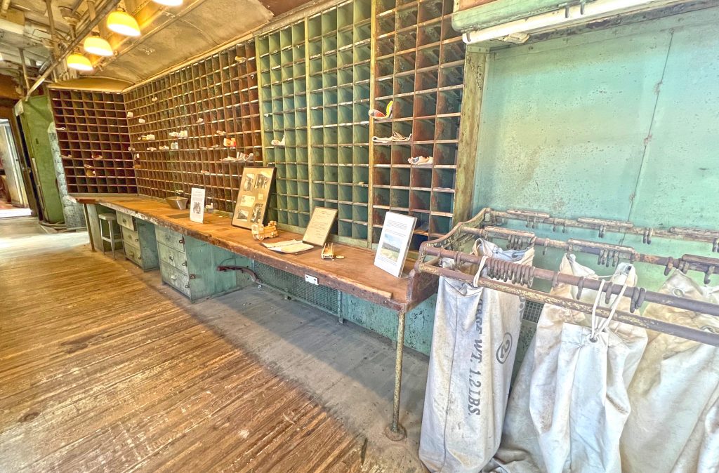 The museum also has several retired cars on site with the original furnishings from back in the day – a mail car, a Pullman (bedroom/bath) car, dining car, kitchen car and luggage car.