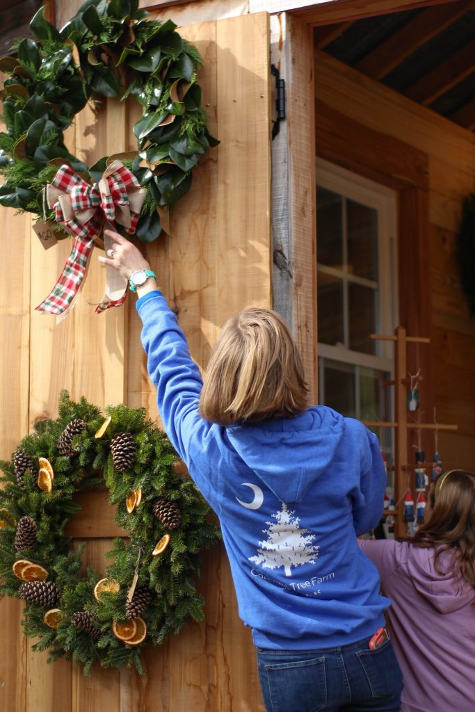 Now a family of five – with two sons (ages 10 and 7) and a daughter (age 5), Caldwell says they’re having a fantastic time – and she’s looking forward to seeing all the people who come out to buy Christmas trees and handmade wreaths, which are made with greenery that comes from the farm.