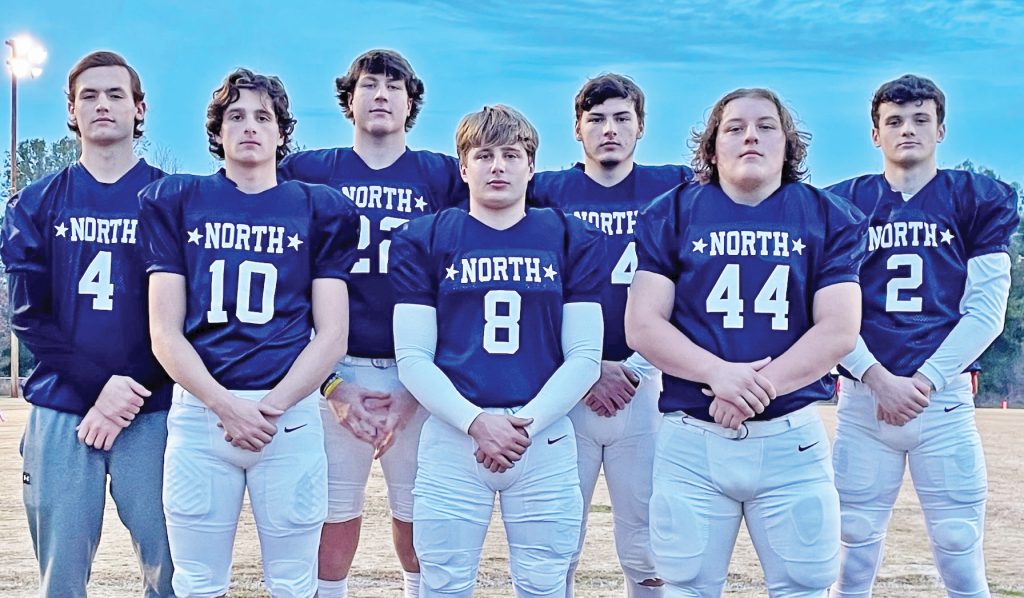 Richard Winn Eagle football seniors (front, left) Anthony Armstrong, Landon Smith, Ben Clowney, junior Charlie Bonds (back left), and seniors Ethan Steward, Ryan Mills and Drew Spires participated in the SCISA 8-man North/South All Star game on Friday, Dec. 1. Richard Winn head coach Paul Brigman and the Eagle coaching staff assisted the North all-star team.