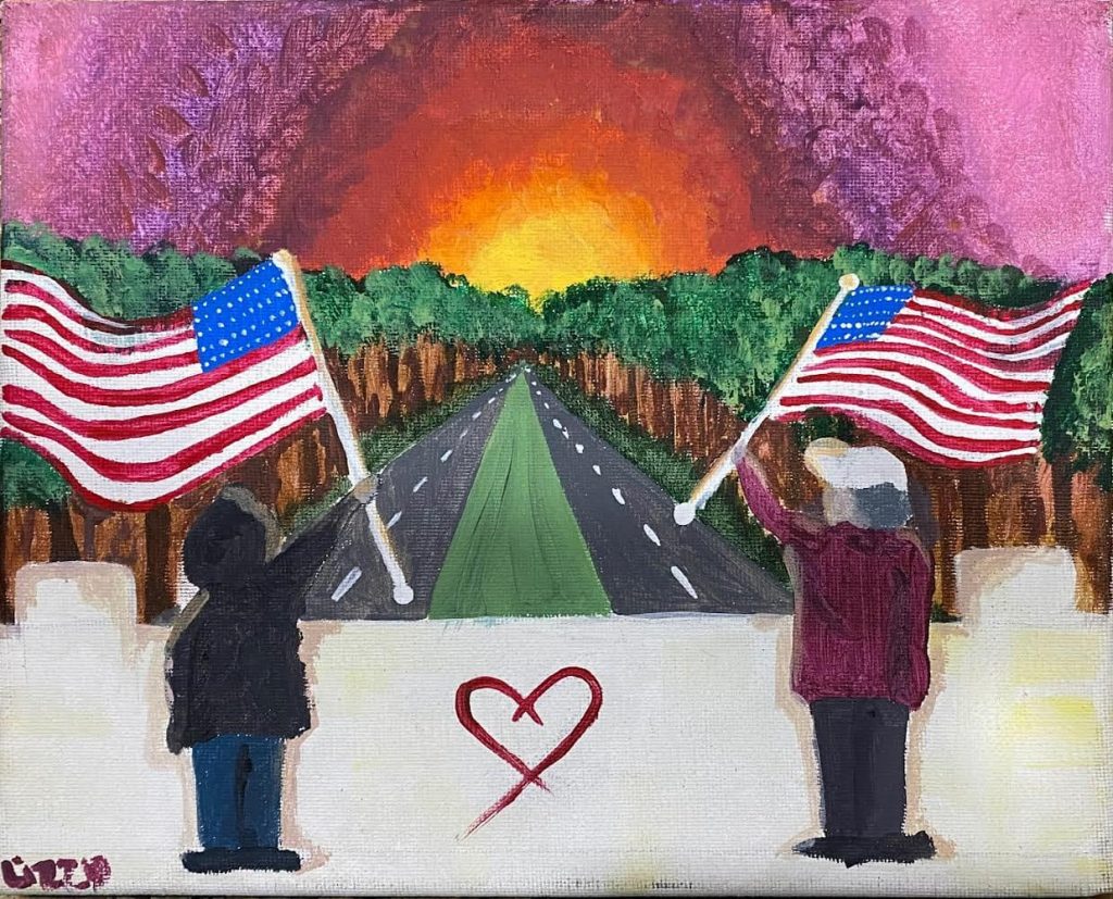“The mother, Courtney, said that she and Lizzie see us on a regular basis up on the bridge flying the flag. She said Lizzie was curious about us and asked if she could paint a picture of us.