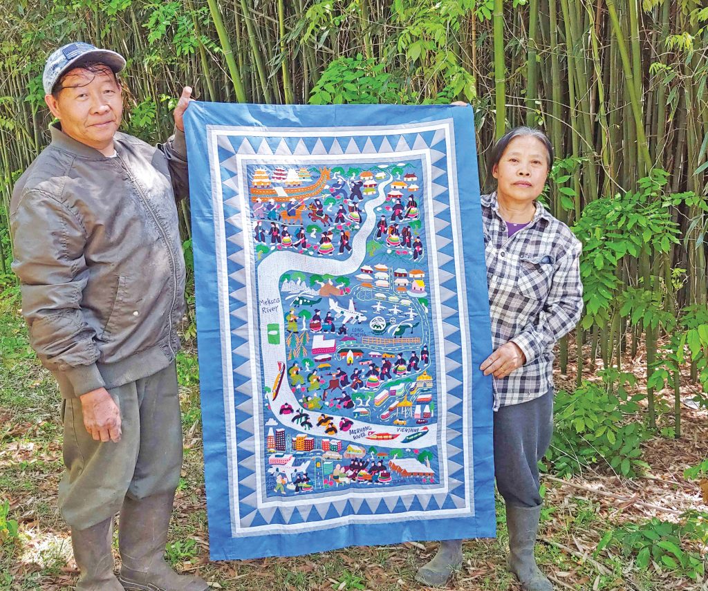Ka and Page Vang with the hand-embroidered quilt tracing their escape from China. | Contributed