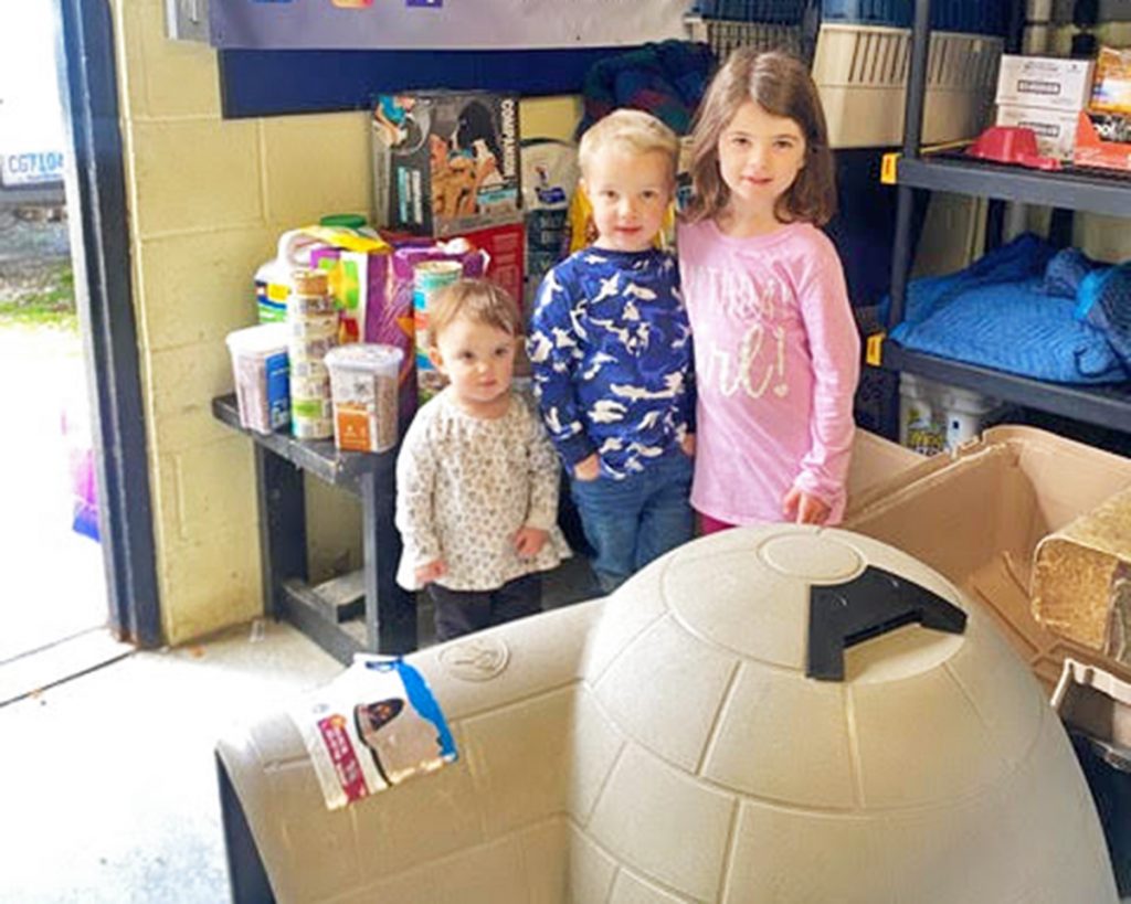 Ronan collected enough donations that she and her brother Levi, 4, and sister Hensley,1, were able to deliver four dog houses to the shelter along with bags of pet food, treats, toys and blankets, and while they were at the shelter, they were allowed to visit all the dogs and cats and hand out treats to them.