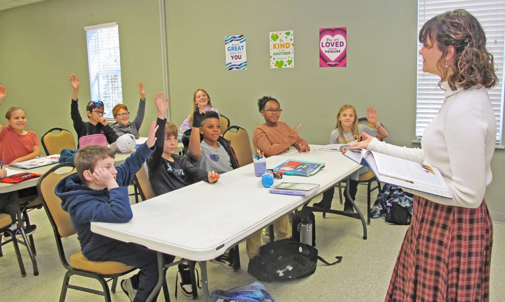 She says she and the other moms discussed the idea in December of 2021. By January, they had permission from Sandy Level Baptist Church, where her husband Scott is pastor, to use the facility there. The doors just kept opening, she says: The classroom rolls quickly filled, and the hybrid school began its first school year the following August.