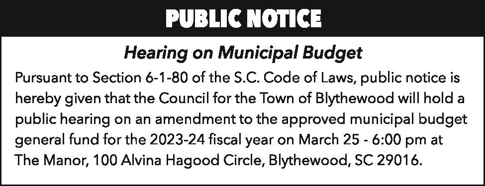 Public Notice: Town of Blythewood