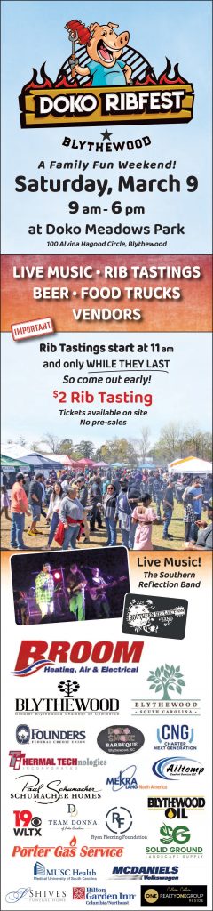 BLYTHEWOOD – The 5th annual Blythewood Doko Ribfest will be back Saturday, March 9 at Doko Meadows Park in Blythewood from 9 a.m. – 6 p.m.