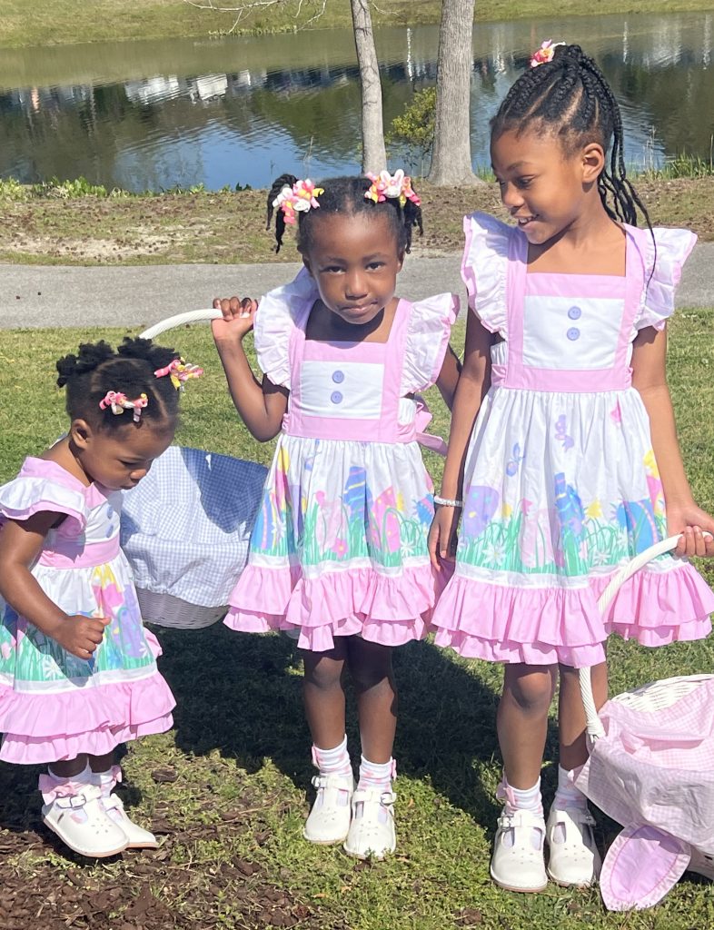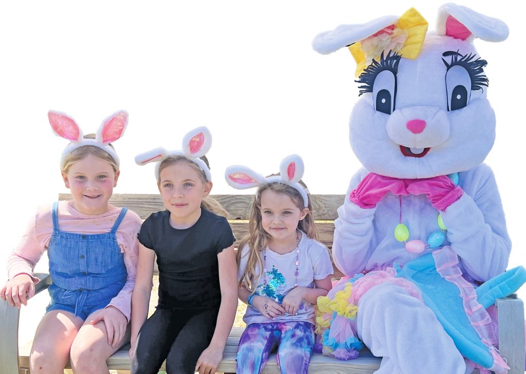 BLYTHEWOOD – On a bright sunny Saturday, sisters Madison, Aleah, and Emma Dawkins pose for a photo with the Easter Bunny following the Village Church’s annual Easter Eggstravaganza at Doko Meadows Park last weekend.