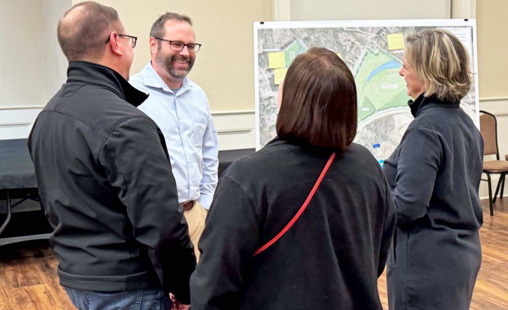 The plan was drawn from what residents said they want to see in the park areas, Mayor Sloan Griffin told those gathered to review the plans. Those ideas were gathered from stake holders, an open house gathering and during a Christkindl pop up event last December in Doko Park.