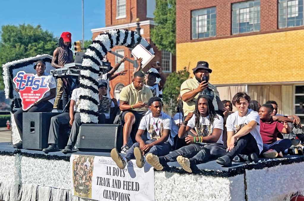 WINNSBORO – A Congress Street parade in downtown Winnsboro on Tuesday honoring the state championship Fairfield Central High School boys’ track and field team was short but very sweet.