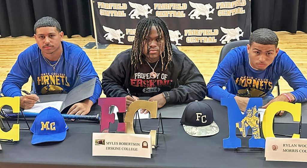WINNSBORO – Three Fairfield Central High School senior athletes made their plans for college official on Wednesday when they signed their National Letters of Intent.
