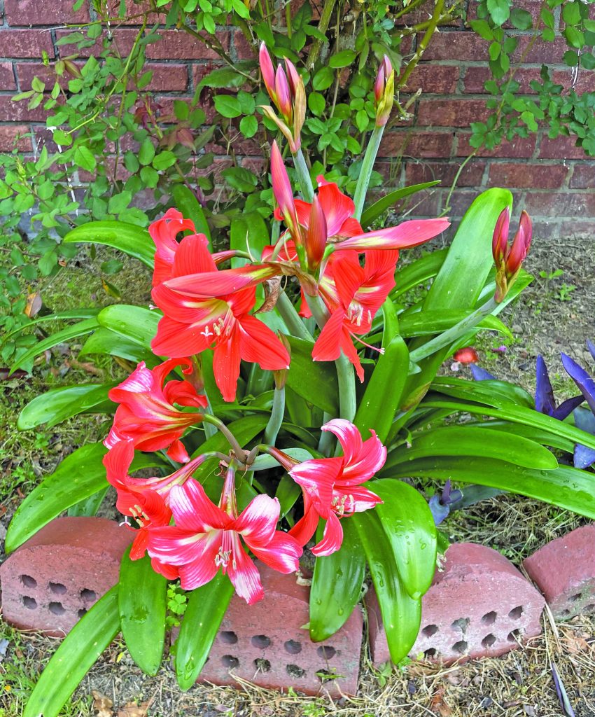 Thompson says the blooming season in her yard begins in March, when she fertilizes everything and the azaleas start to bloom. The roses start blooming in April, and the hydrangeas bloom in May. The elephant ears bloom in May and June, and the crepe myrtles also bloom in June.