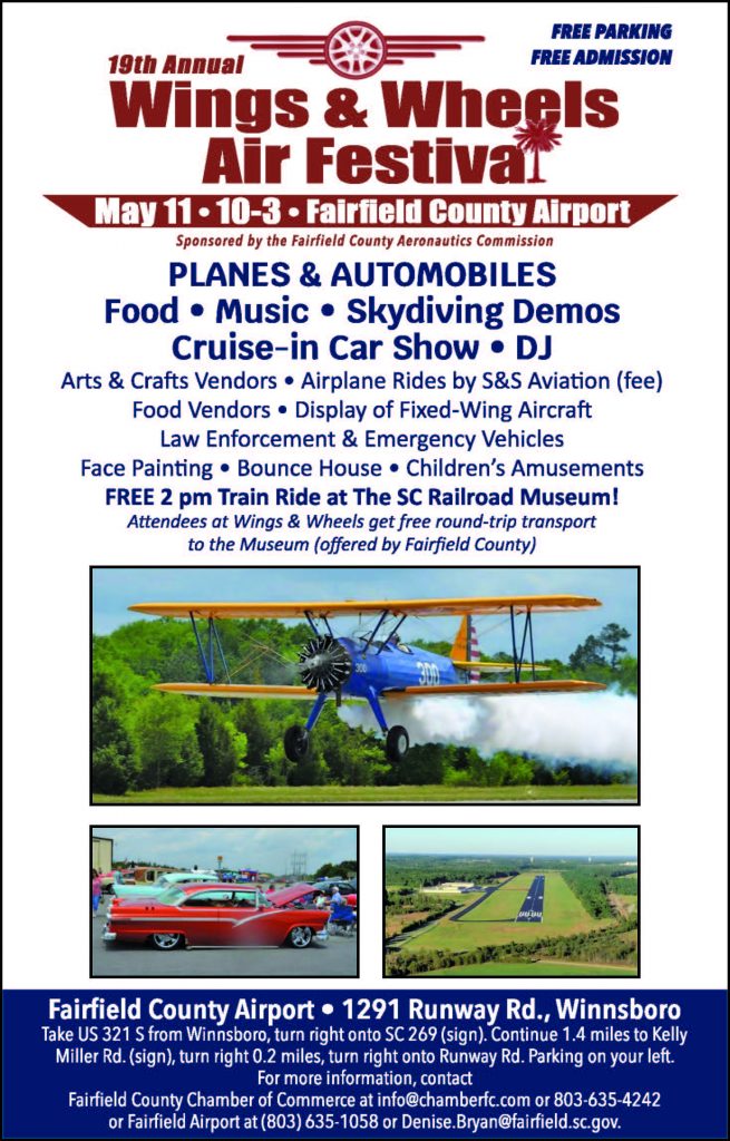 For more information, contact Fairfield County Chamber of Commerce at info@chamberfc.com or 803-635-4242 or Fairfield Airport at 803-635-1058 or Denise.Bryan@fairfield.sc.gov.