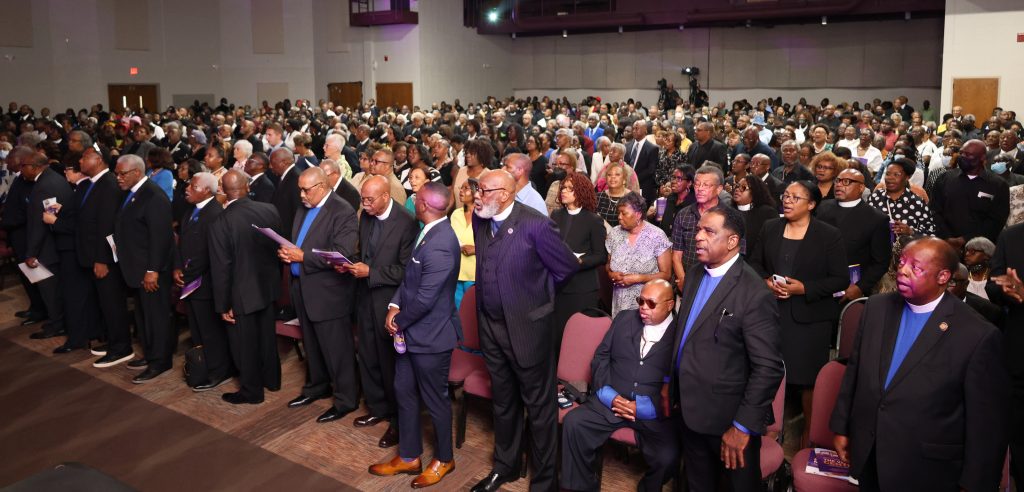The three-hour service included performances by the Voices of Bethel and a sermon by Bishop Frederick Allen Wright of the 20th Episcopal District.