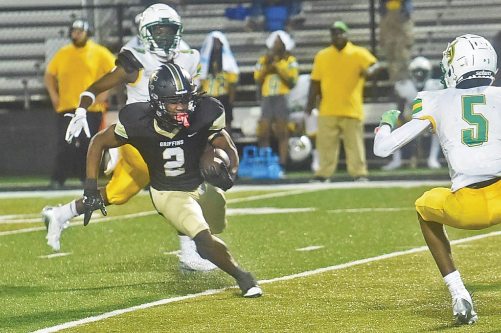 He returned it all the way to the Hornets’ 18-yard line, which set up a four-play drive that lasted one minute and 19 seconds. Junior quarterback Kaden Diggs got the Griffins started with a 12-yard gain on an off-tackle run on a direct snap.