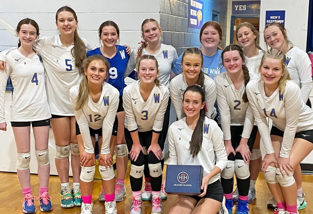 WINNSBORO – Catherine Blair Spires, a member of the Richard Winn volleyball team, partnered with Hilinski’s Hope last week during a game against Laurens Academy, which coincided with Student-Athlete Mental Health Awareness week.