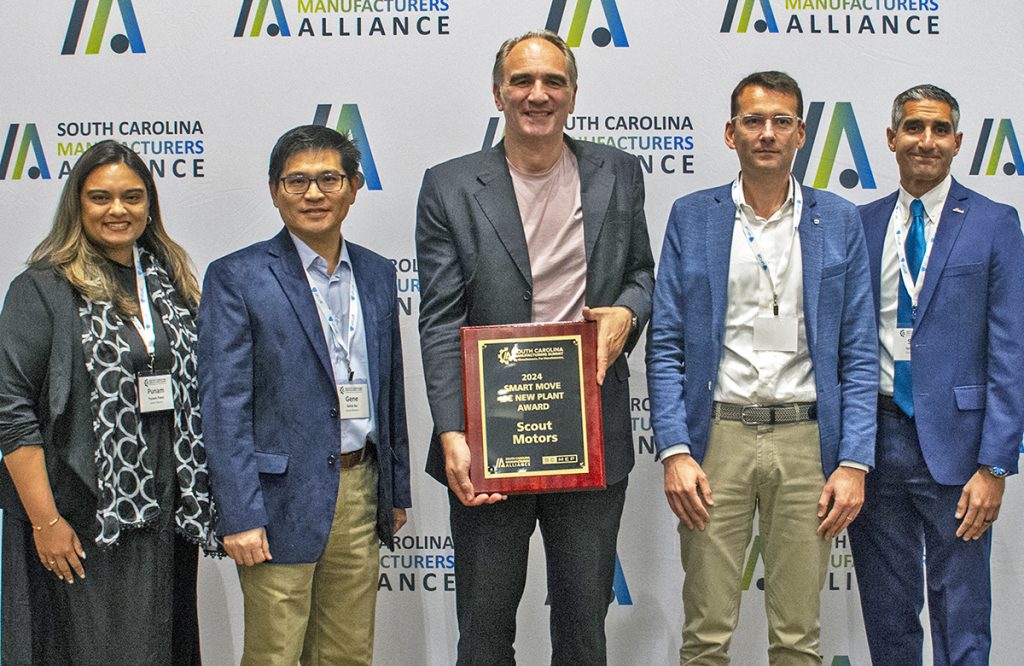 COLUMBIA – The Scout Motors plant in Blythewood was honored recently with the Smart Move SC New Plant award, one of 11 presented by the South Carolina Manufacturers Alliance (SCMA) and the South Carolina Manufacturing Extension Partnership (SCMEP).