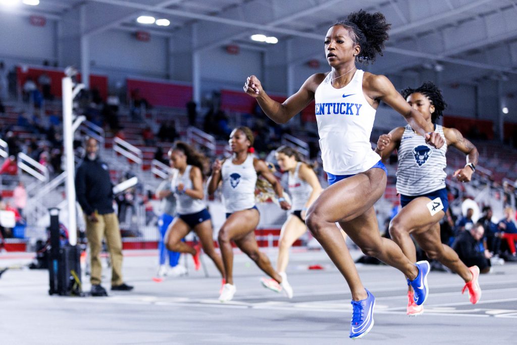 The Winnsboro native, competing in only her second collegiate meet, stormed to a personal best time of 7.29 seconds to win the preliminary round of the 60m dash on Friday. In addition to shaving a near-tenth of a second off her personal best—set in her collegiate debut in December—Holmes broke the Kentucky Freshman Record in the event, a mark of 7.30 seconds set by NCAA and World Champion Abby Steiner in 2019. Holmes would win the semifinal round on Saturday before finishing third in the final.