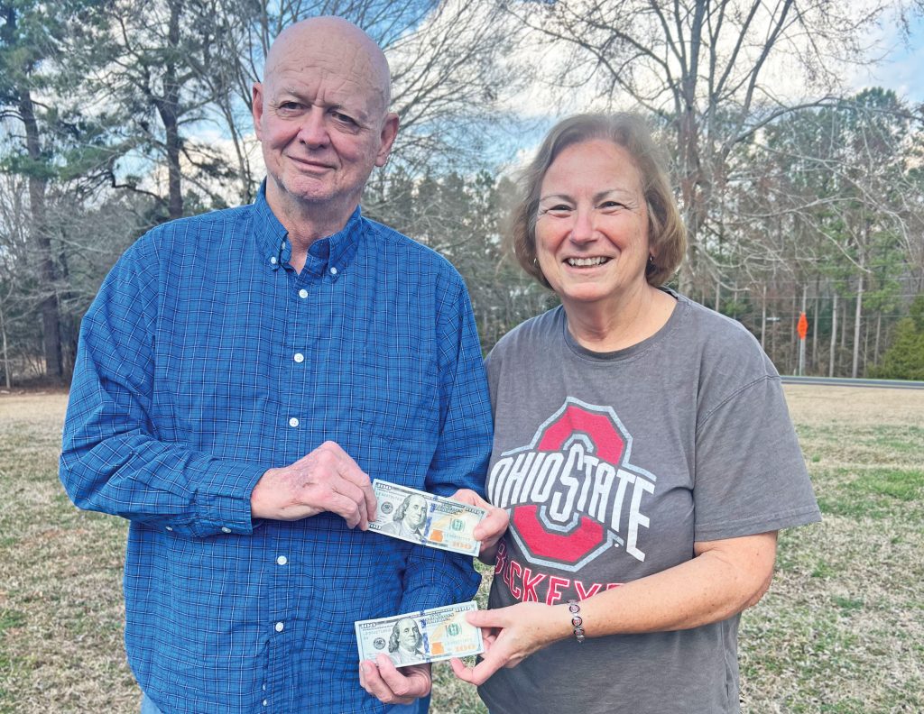 When Winner came to pick up her winnings, she wore her favorite Ohio State shirt and posed with Jimmy Ray Douglas, who sponsored this year’s competition. Douglas is the only two-time winner of the newspaper’s contest.