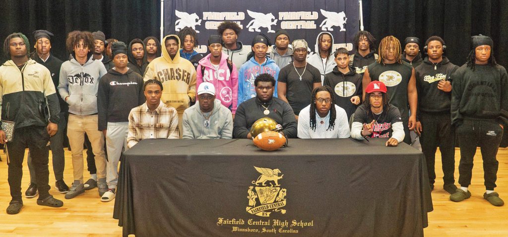 WINNSBORO – “There are only 7% of high school athletes in all sports that get an opportunity to go and play on the next level,” Fairfield Central football coach Demetrius Davis said to open last week’s athletic signing ceremony, “so kudos to these guys for doing what they needed to do.”