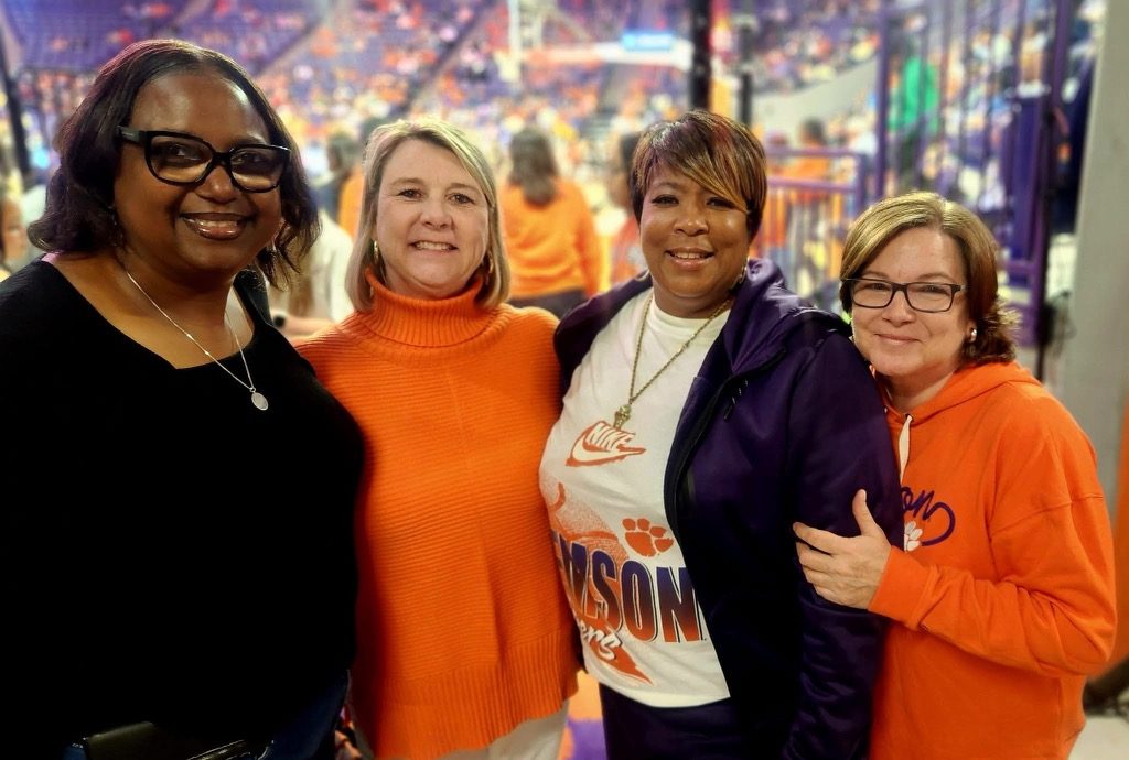 CLEMSON – Fairfield County native Jena (Barnett) Johnson, pictured second from left, joined teammates Louise Greenwood-Dent, left, Karen Jenkins Gray, and Cheryl Nix in Clemson last week to celebrate 50 years of Clemson women’s basketball.