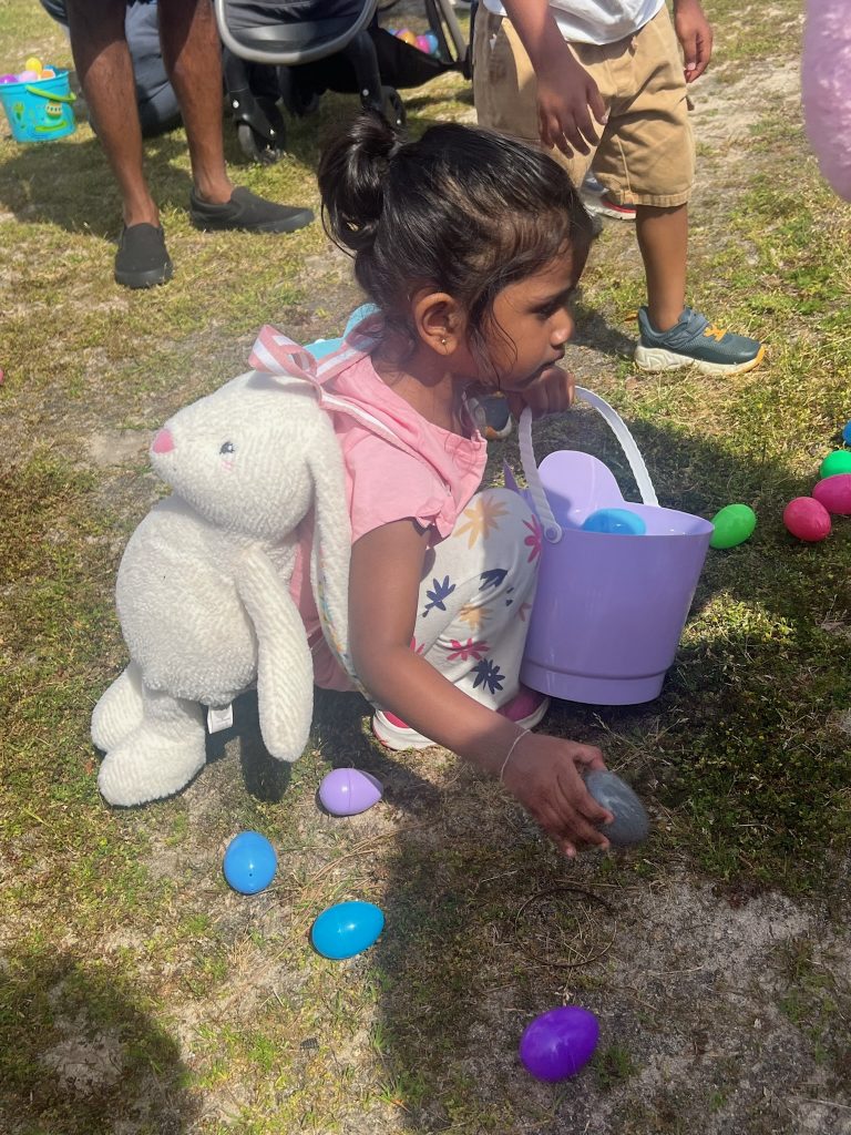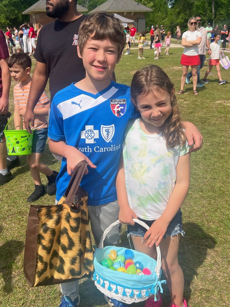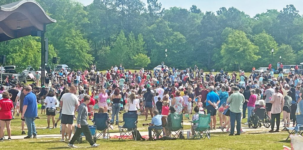 BLYTHEWOOD – Not everyone feels the same about the big bunny. But the crowd of egg hunters at the giant Easter egg hunt sponsored by the Village Church on Saturday, April 19 at Doko Park seemed to agree about how much fun they all had hunting eggs, eating hot dogs and bbq sandwiches, and showing off their balloon wear.