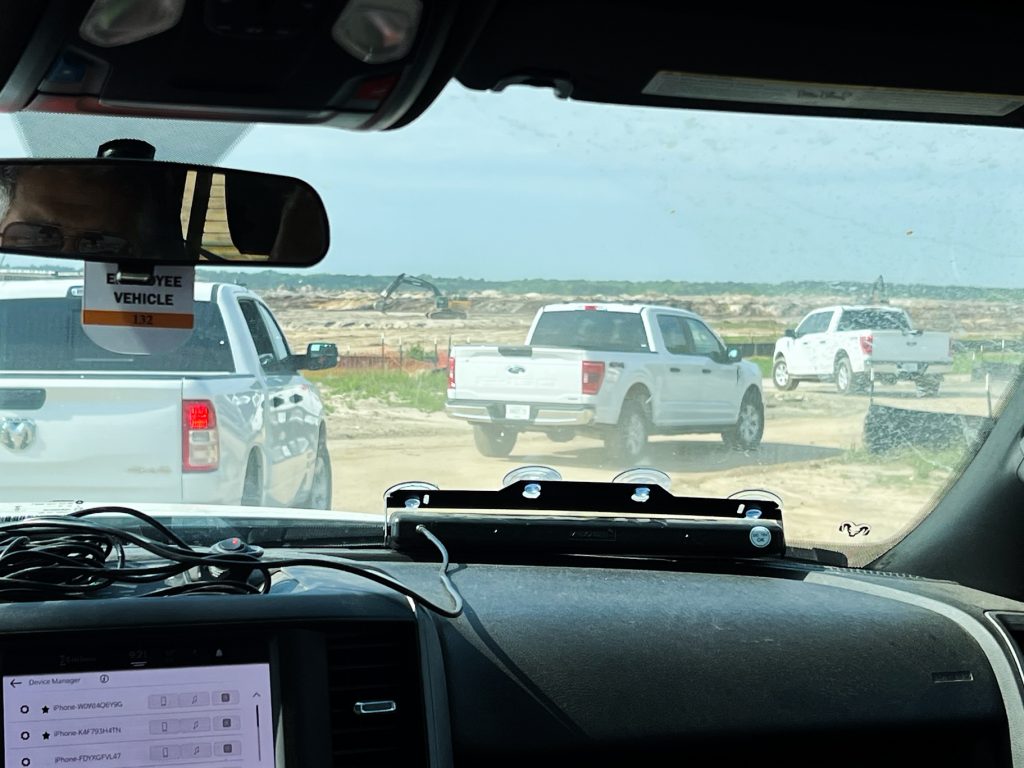 Departing from the company’s red brick house on Blythewood Road near Fairfield Electric Cooperative, and accompanied by Scout CEO Scott Keogh and other Scout officials, the journalists were driven to the production center in a caravan of six pickup trucks – three journalists to a truck – for a tour of the grounds and the inside of massive buildings in various stages of completion – from the bare steel framework of the assembly building to a state-of-the-art paint shop that’s nearing completion.
