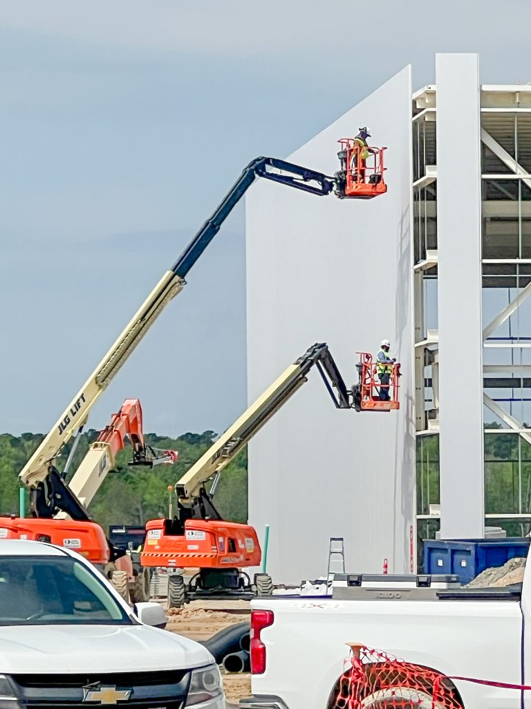 The production center’s several buildings – 44,000 tons of steel, basically, six or so Eiffel Towers – have all been constructed since the groundbreaking ceremony a year ago February. The first steel beam went up last May.