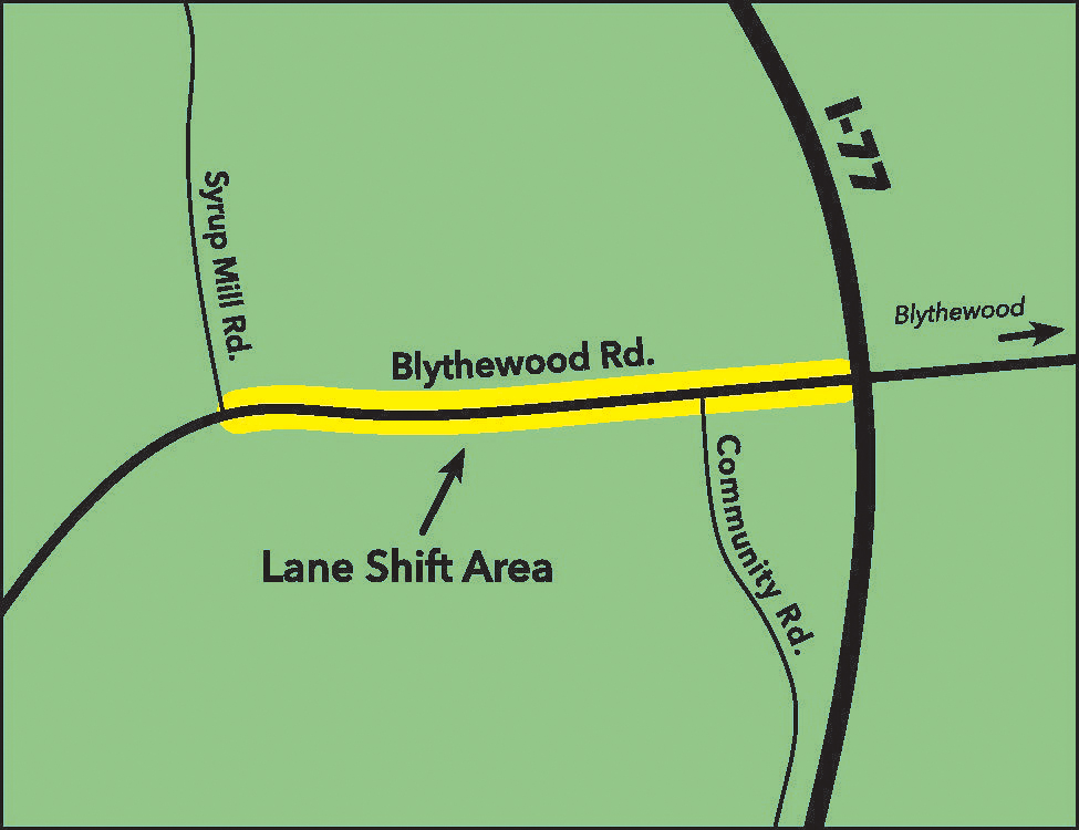 BLYTHEWOOD – Blythewood drivers can expect roadway changes next week. Temporary closures on Northbound I-77 and Community Rd., as well as traffic pattern changes on Blythewood Rd. are coming next week.