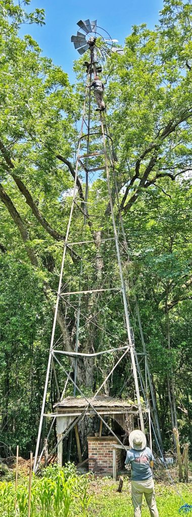 The Historical Society contacted Bruce Miller, a recognized windmill authority, with The Southeast Windmill Company in Rome GA, to assess the situation and, ultimately, to move the windmill.