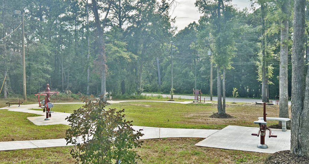 The new park, which features a paved walking trail with exercise equipment, is located at 7769 State Hwy 215 South in Jenkinsville.