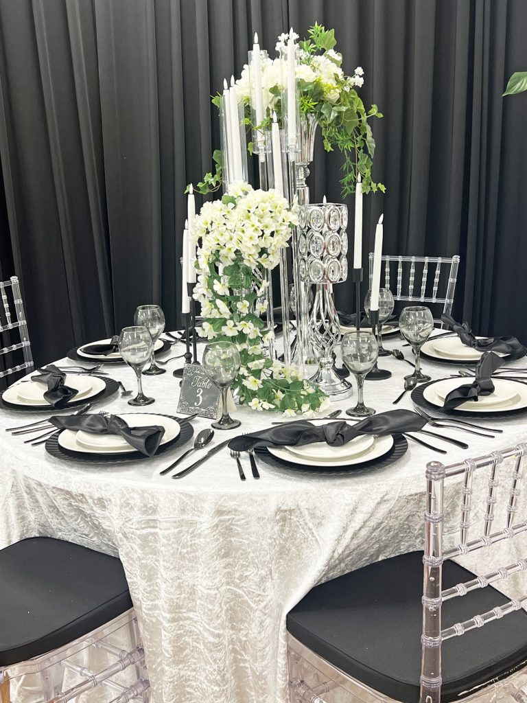 “We can do all the planning so you can have all the fun, or brides and party hosts can plan their own event, choosing their own décor from a selection of tables and Chiavari chairs, tableware, linens in black or white, and more, including Bluetooth enabled sound,” she said. “The same luxury selections are available for rental at a remote location.”