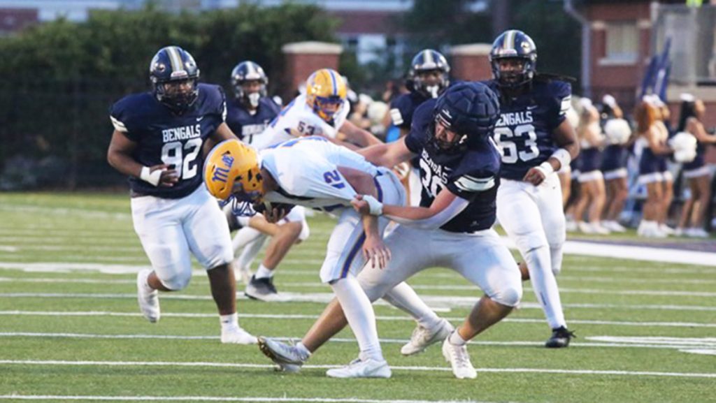 On defense, the Bengals (1-2) pestered Yellow Jackets quarterback Quinn Kelly, sacking him six times. They forced two lost fumbles and intercepted a pass, but Kelly stayed on his feet enough to complete 13 of 20 passes for 170 yards.