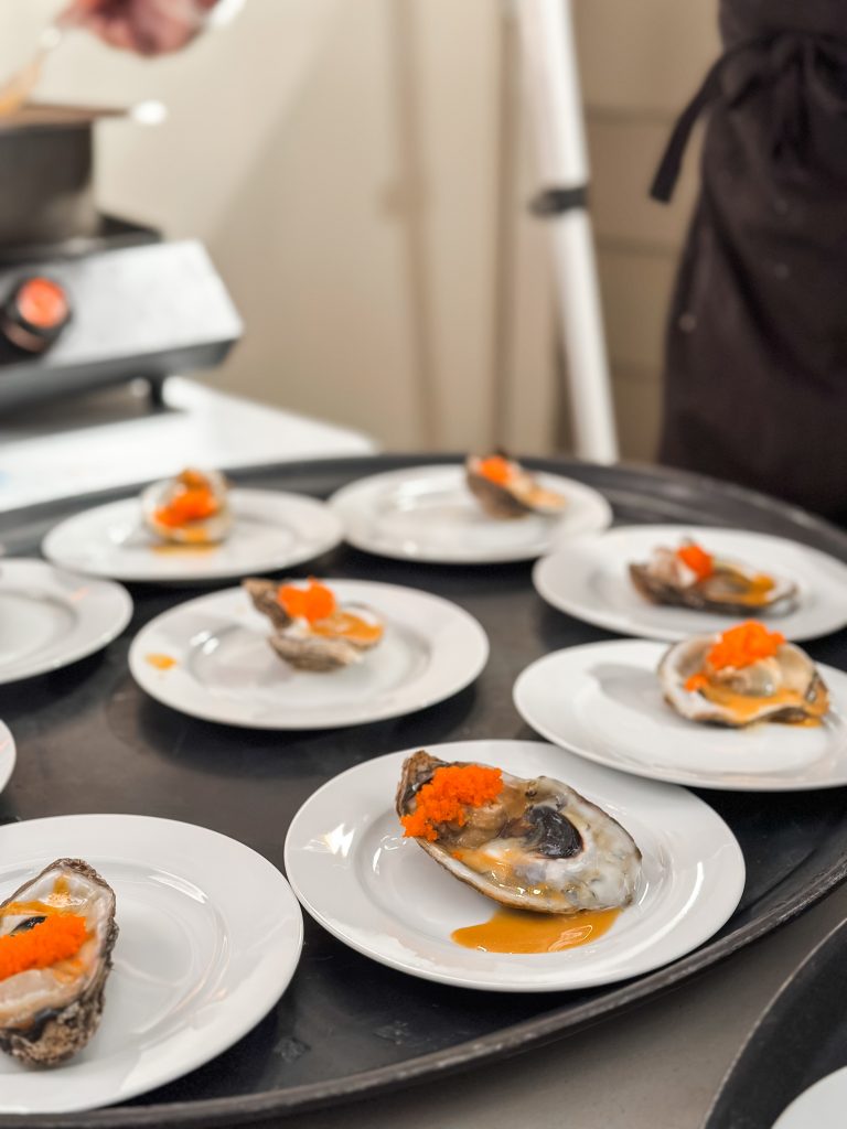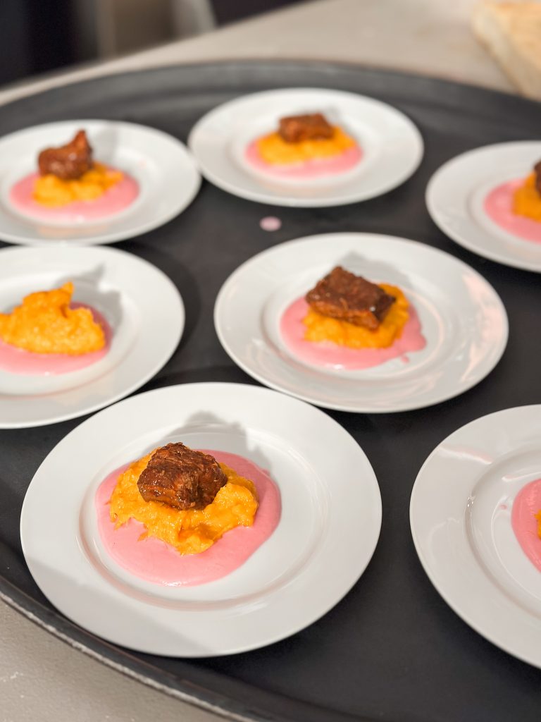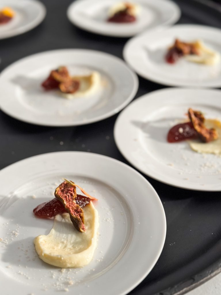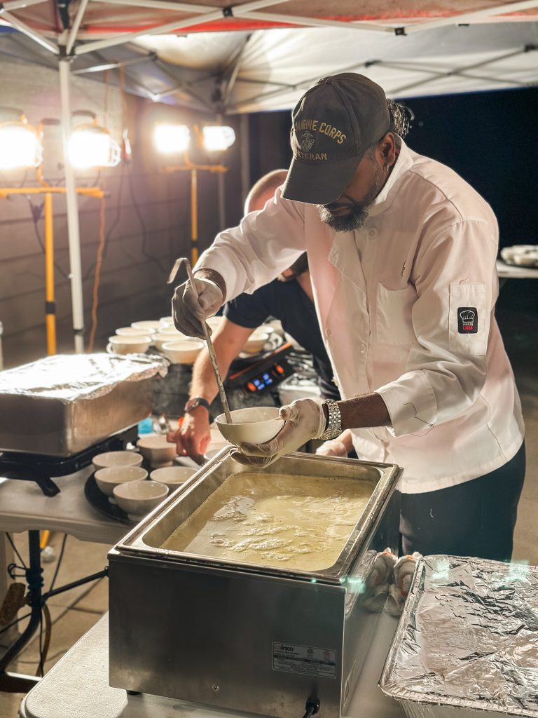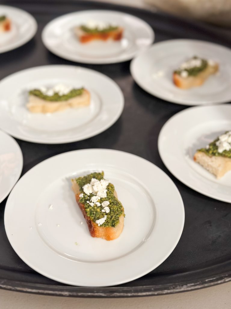 Ninety attendees, including town council members and candidates, regular shoppers, vendors, and families, enjoyed a signature cocktail, then live music from The Millhands bluegrass band. The evening featured a video celebrating the community’s local farmers. A nine course meal was prepared by chef Andrew Gajadhar, and served by high school volunteers from both Blythewood and Westwood High Schools.
