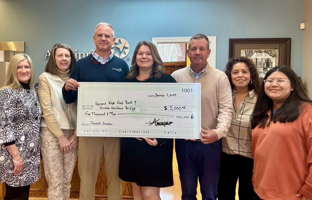 BLYTHEWOOD – Ameriprise Financial on McNulty recently presented a $2,000 donation to Christian Assistance Bridge (CAB). In honor of their clients, Brian Lee and his team made the contribution to help support local families facing food insecurity and financial hardship this holiday season.