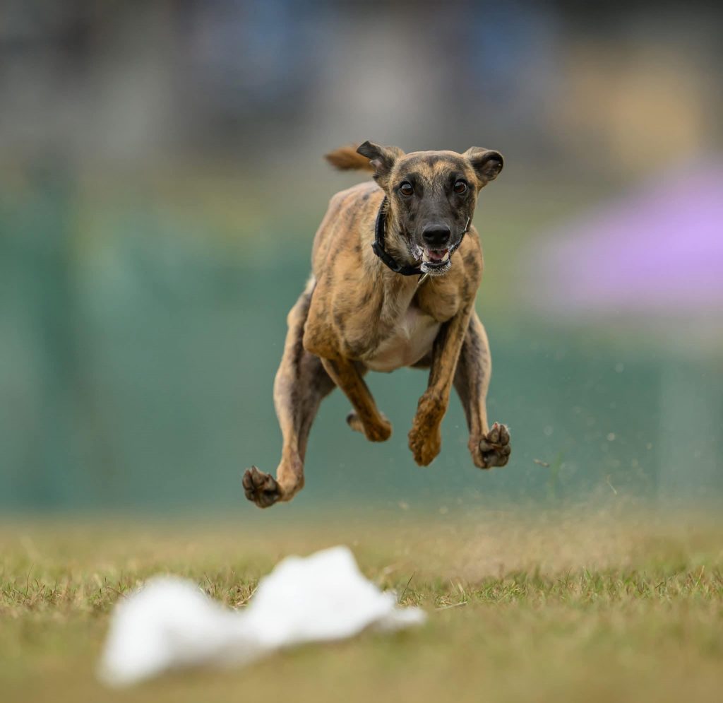 According to the AKC webpage, Coursing Ability Testing is a timed 100-yard dash where dogs run one at a time, chasing a lure.