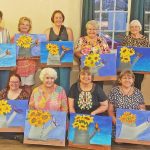 The Winnsboro Women Club hosted a paint and pour event at their July 2025 meeting. Paint and pour artist Samantha Blair helped member and friends paint their own sunflower paintings.