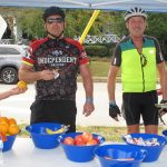 BLYTHEWOOD – The bike tours for the Bikers and Beer Event began and ended at Doko Park on Saturday. Above: Patti Cookendorfer, left, and Robbie Martin serve fruit, granola and water to the bikers as they round through Ridgeway.