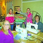 Blythewood quilters gathered at the Nord House to make over 50 kennel quilts for pets in shelters who were displaced by the recent hurricanes from Texas to Puerto Rico. Joining in the charitable endeavor are quilters (standing) Pat Harwell, Stephanie Alexander, Kem Smith and (seated) Donna Royson and Cindy Bundrick.
