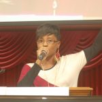 Minister Whitney Bell gives the congregation at Gethsemane Baptist Church in Blair the history of the annual Watch Night service on New Year’s Eve. The service has been an African-American tradition since 1862.