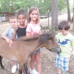 While Reese Addison, 6, Kaliyah Taylor, 8, and Harmony Addison, 8, pose for a photo, Zack the mini pony nibbles on six-year-old Bryson Spivey’s shirt during Fairfield County’s Ag & Art Tour on Saturday.