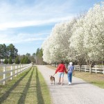 The Bradford Pears and forsythia are in full bloom in Blythewood and Fairfield County ushering in the first day of spring. These Blythewood residents take the occasion of a warm sunny day to check the mailbox and walk their dog.