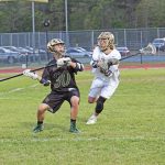 BLYTHEWOOD – Blythewood Lacrosse hosted River Bluff in the first round of the state playoffs in dominating fashion. Blythewood sent the Gators back to Lexington with a 3-7 loss. Above, Sophomore Ryan Williams (13) defends a River Bluff pass. Below, senior Matthew Clary (7) battles for position.